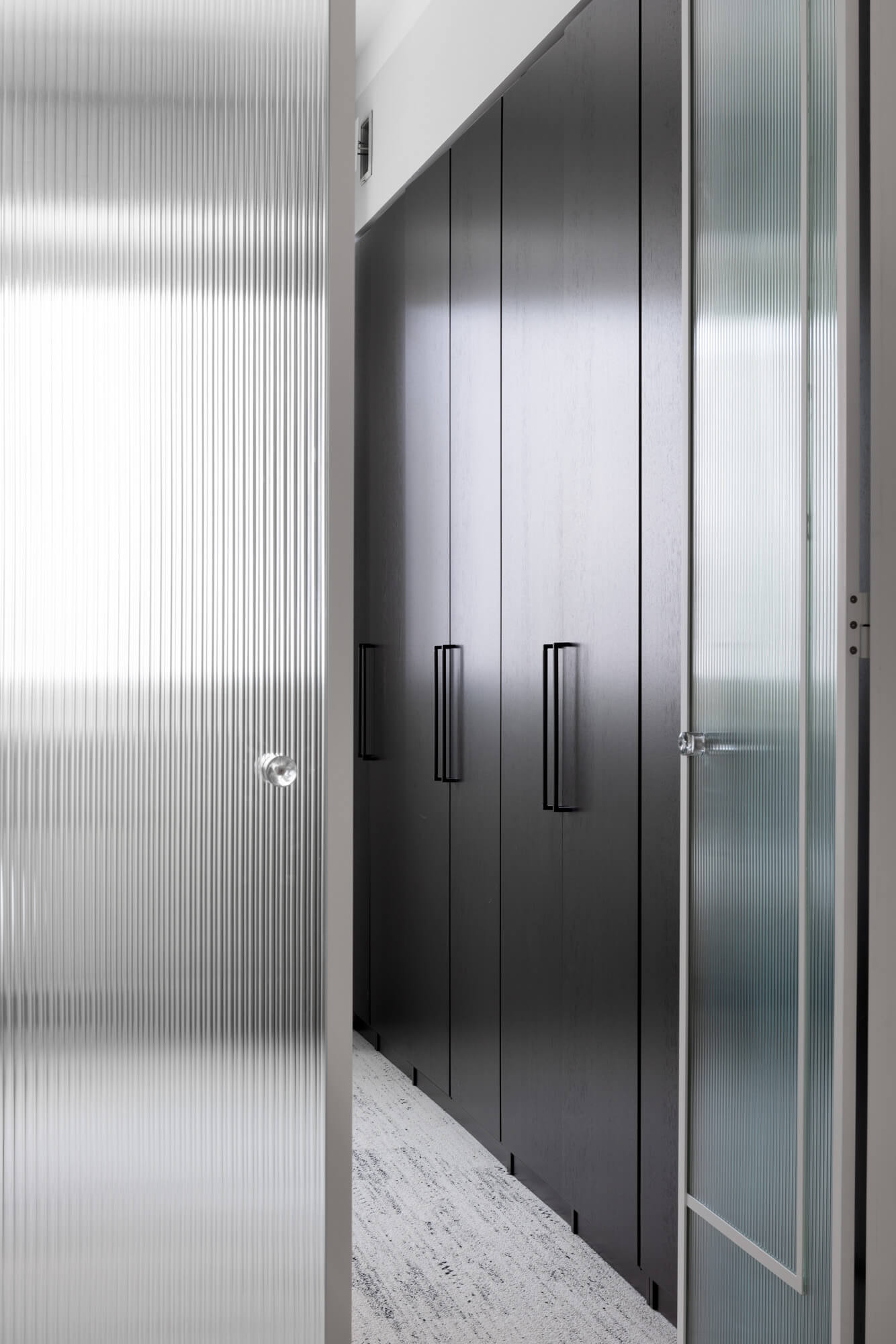 Magamistoa ja koridori vahele joonistas Joonas kerge alumiiniumraamiga klaasukse, mis laseb valgusel ruumist ruumi liikuda.